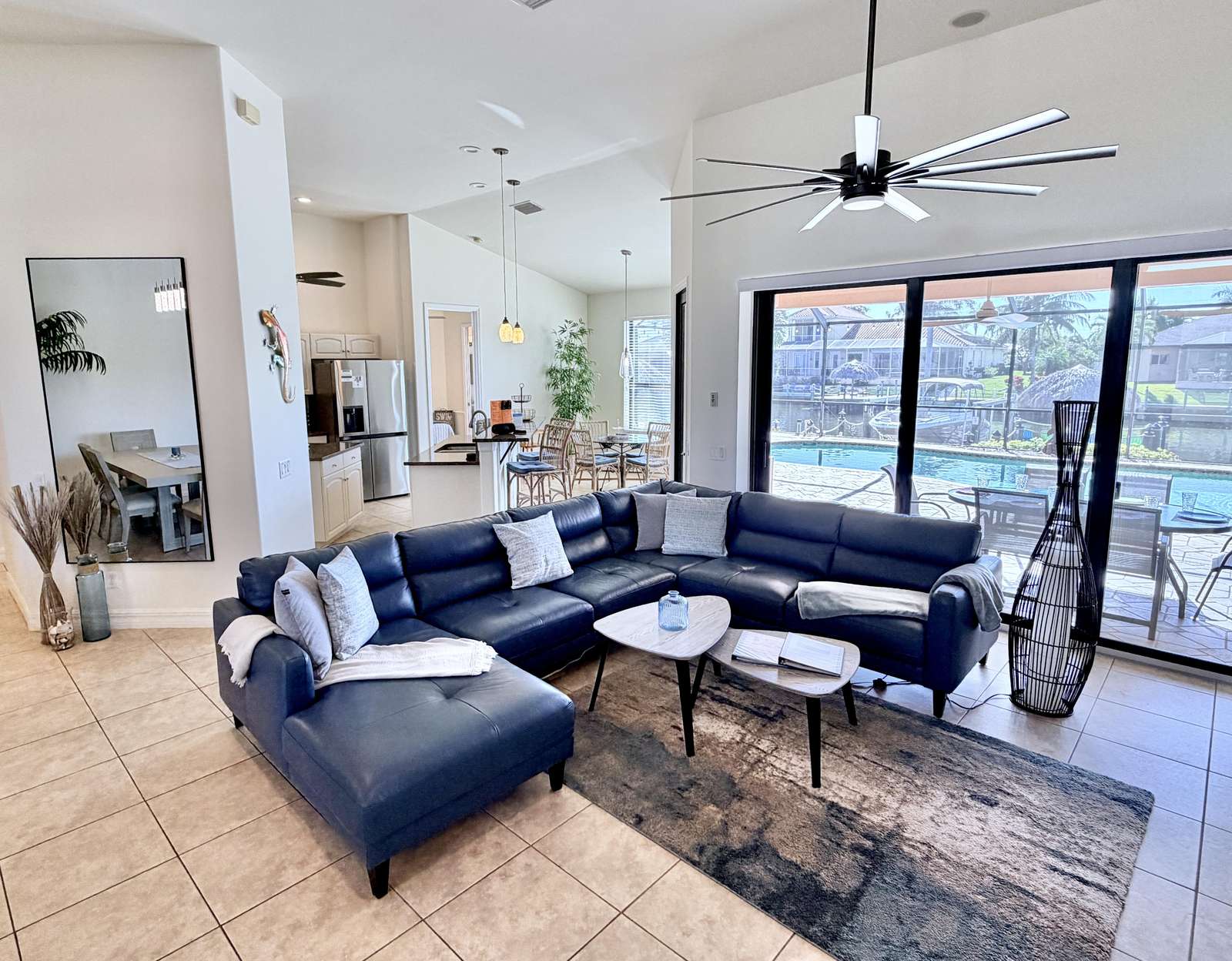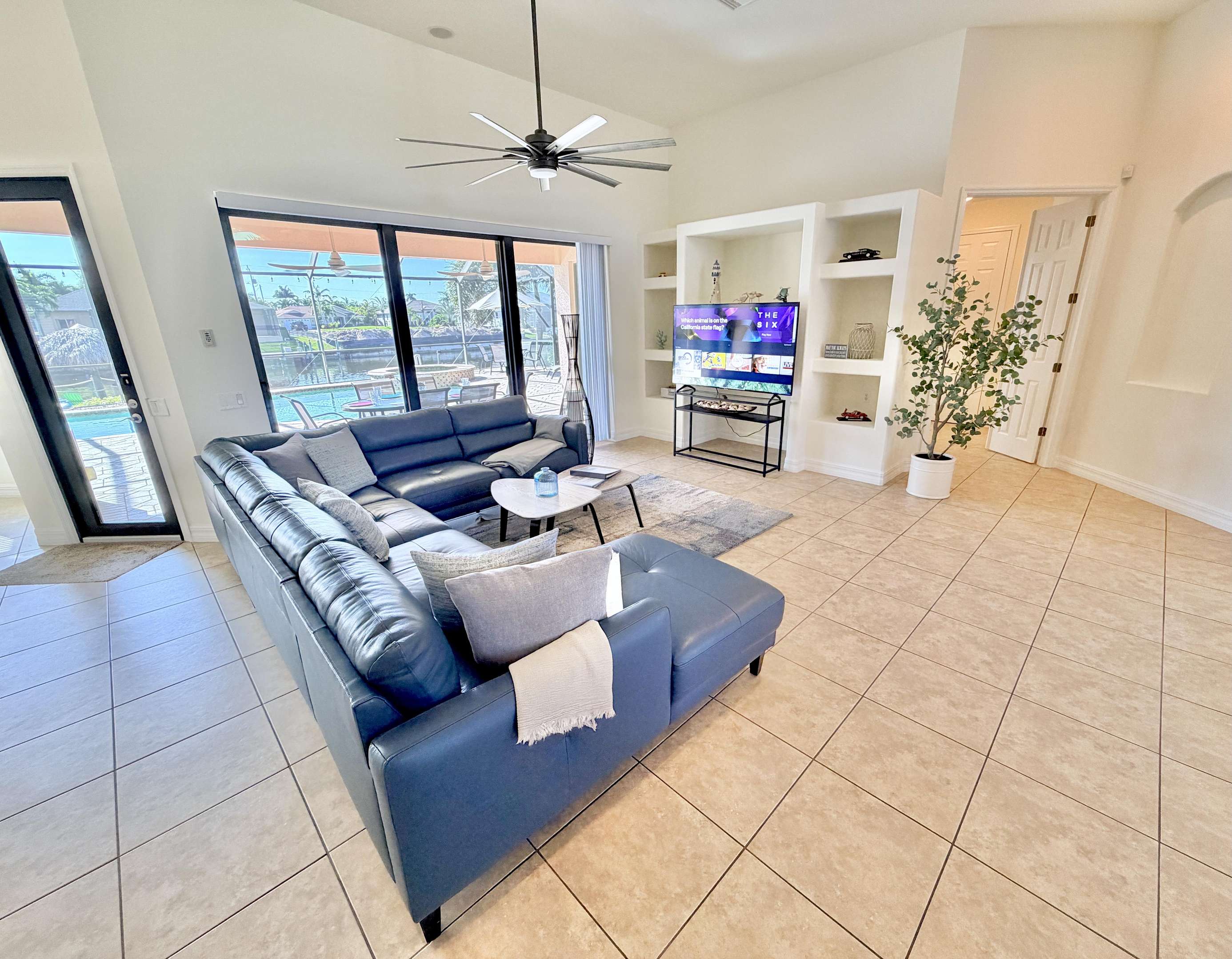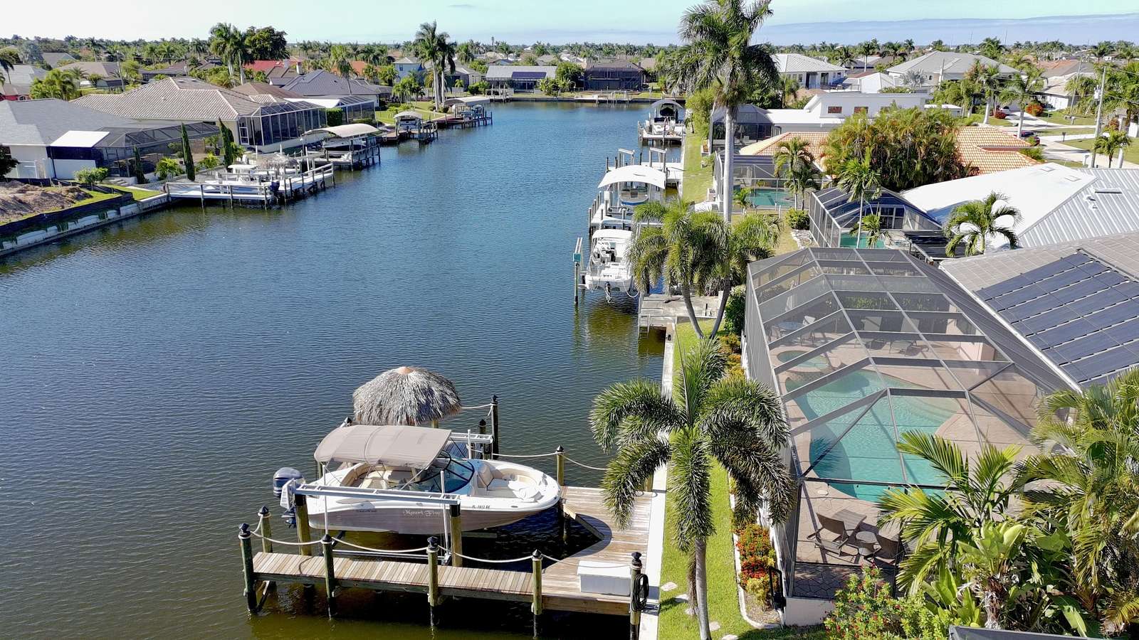 Welcome to Villa Mauritius, a sprawling estate on a beautifully landscaped lot with southern exposure! This spacious home is tastefully equipped and appointed to assure you have a wonderful stay. The screened-in, sun-filled porch with its large, heated saltwater pool and spa is everyone's favorite spot day and night. There is a beautiful dock inviting everyone to enjoy those world-renowned Florida sunsets right down the wide waterway. Make it truly a Cape Coral vacation and rent the powerboat with the house! A licensed Captain will provide a thorough instruction so you will enjoy every day on the water and bring home priceless memories. Please just call and inquire!