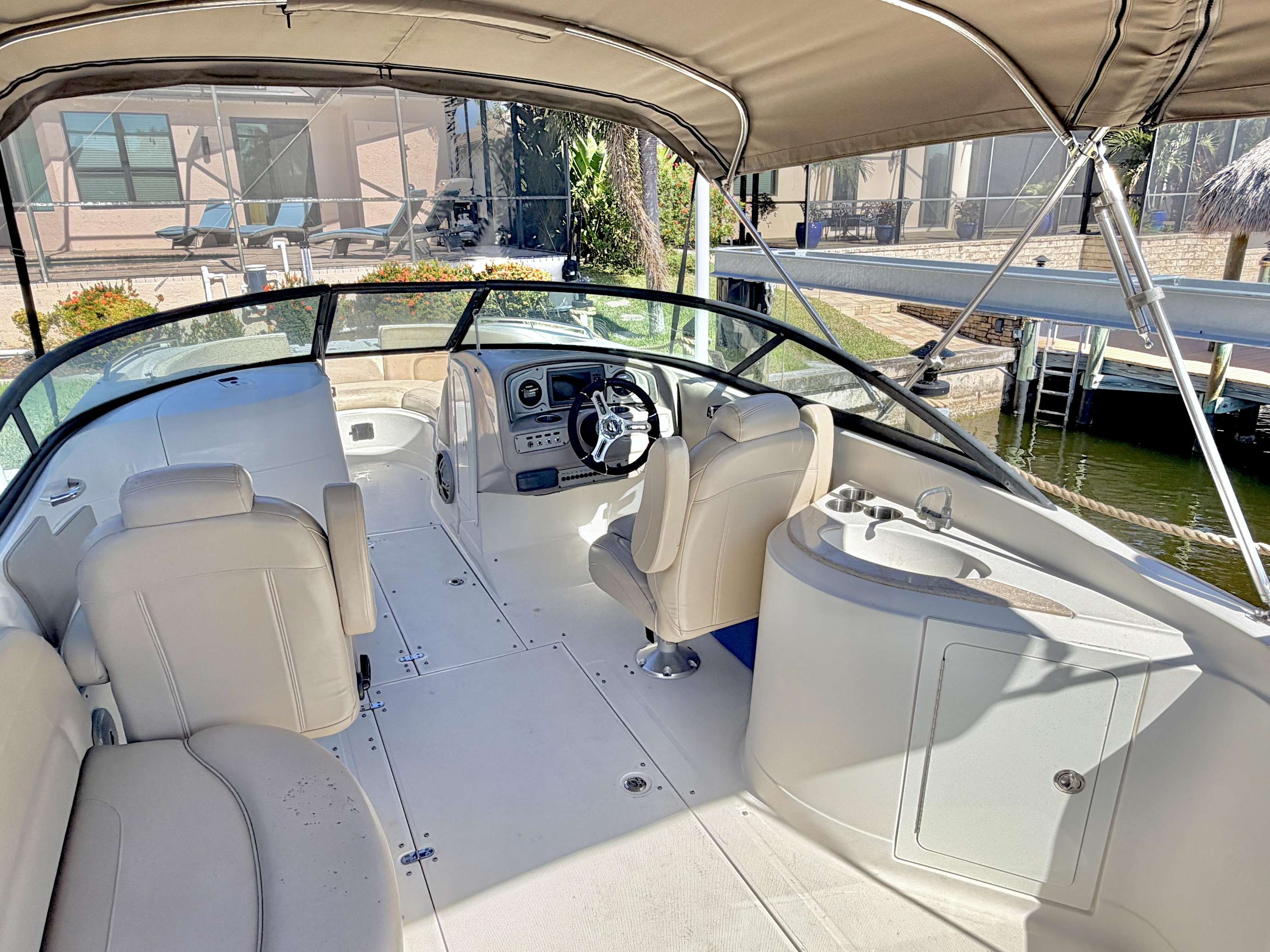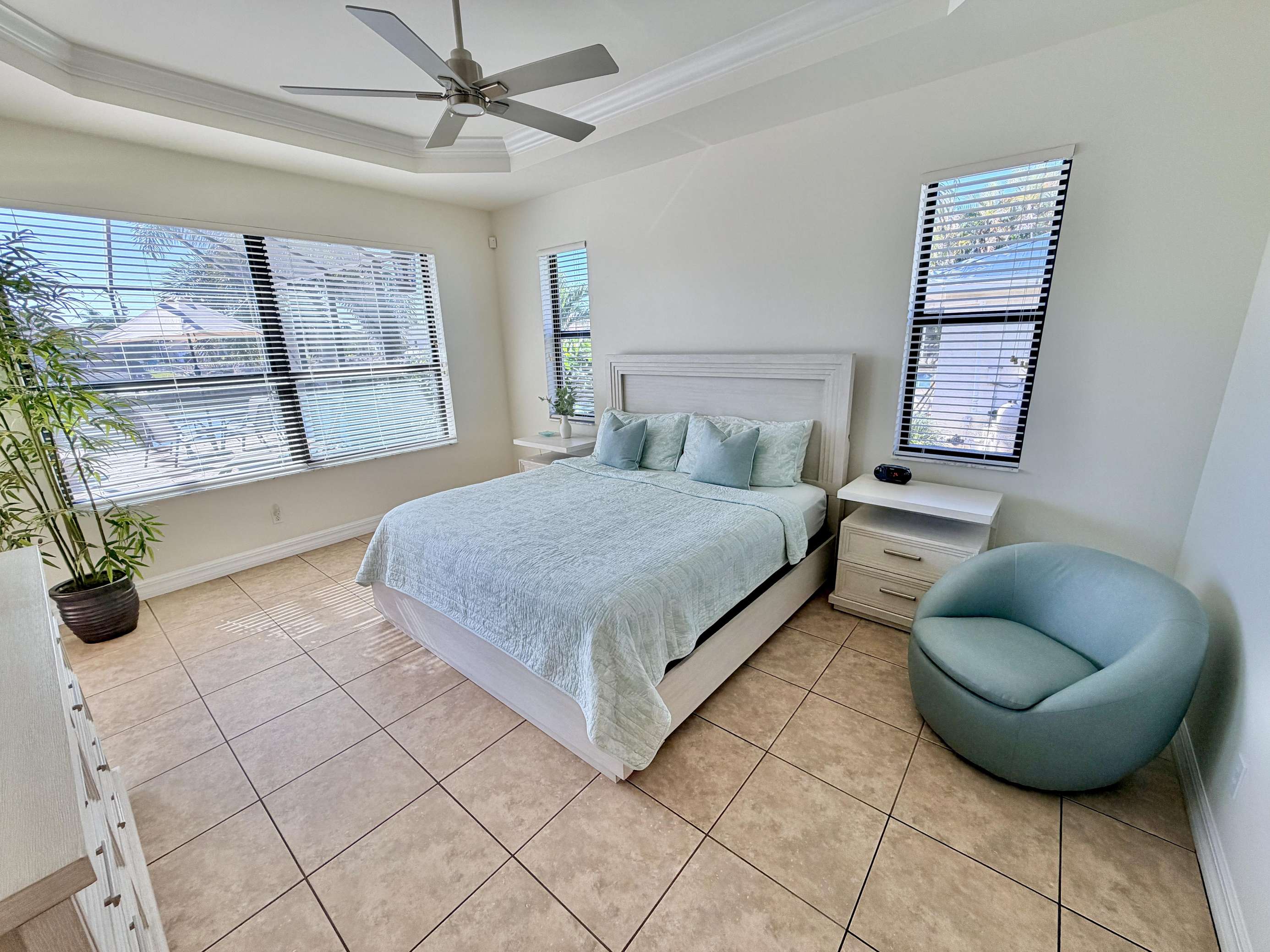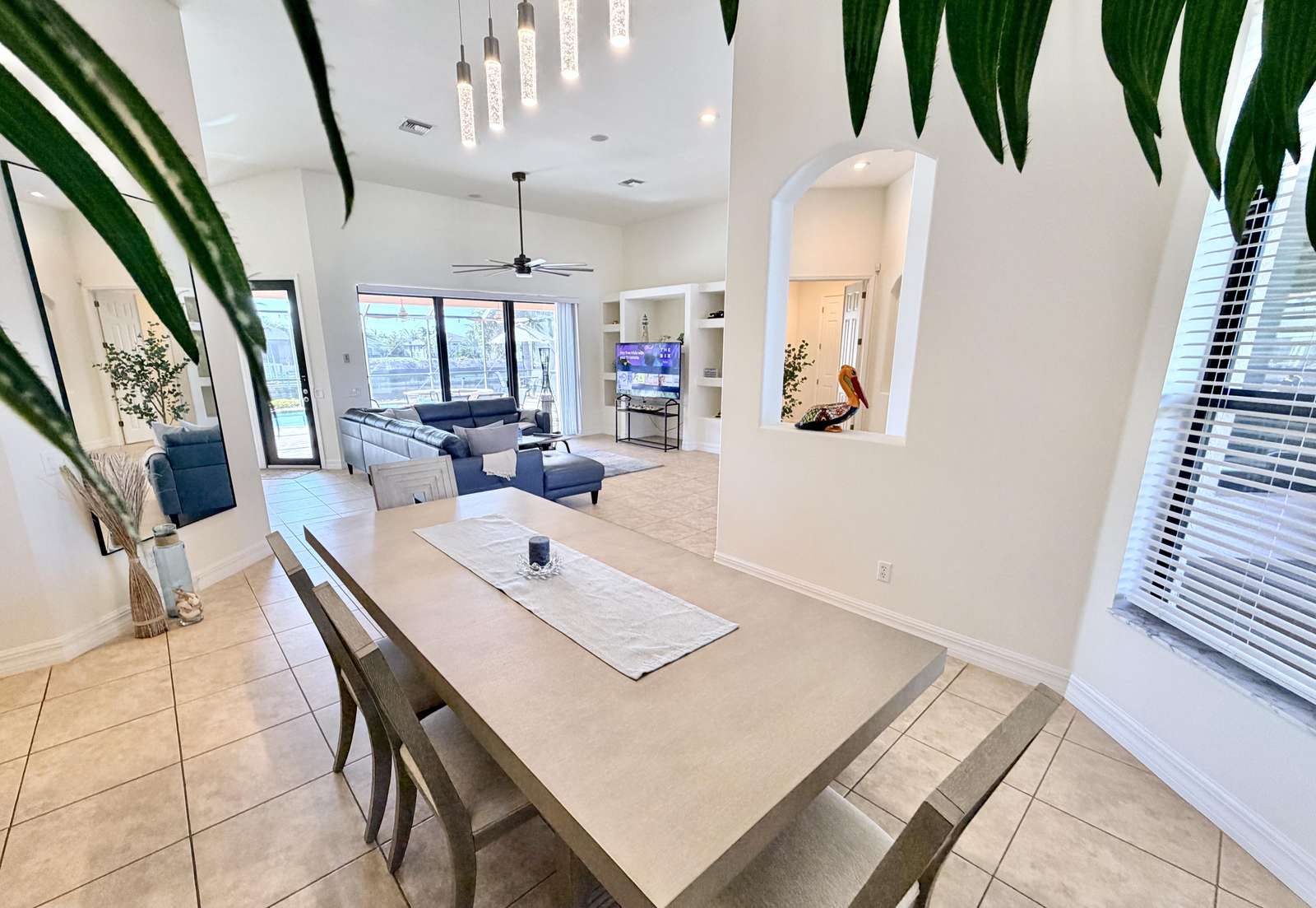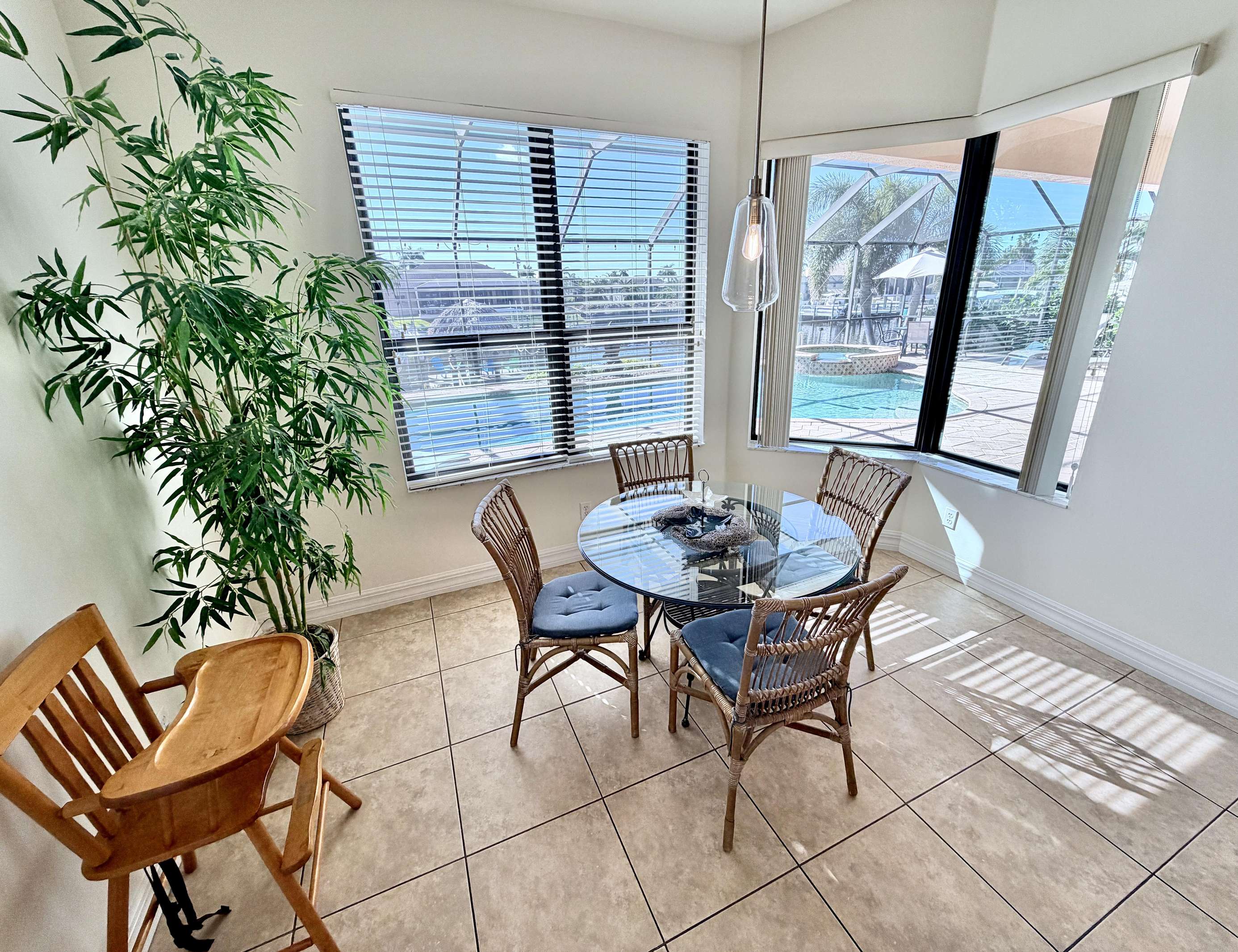 Welcome to Villa Mauritius, a sprawling estate on a beautifully landscaped lot with southern exposure! This spacious home is tastefully equipped and appointed to assure you have a wonderful stay. The screened-in, sun-filled porch with its large, heated saltwater pool and spa is everyone's favorite spot day and night. There is a beautiful dock inviting everyone to enjoy those world-renowned Florida sunsets right down the wide waterway. Make it truly a Cape Coral vacation and rent the powerboat with the house! A licensed Captain will provide a thorough instruction so you will enjoy every day on the water and bring home priceless memories. Please just call and inquire!
