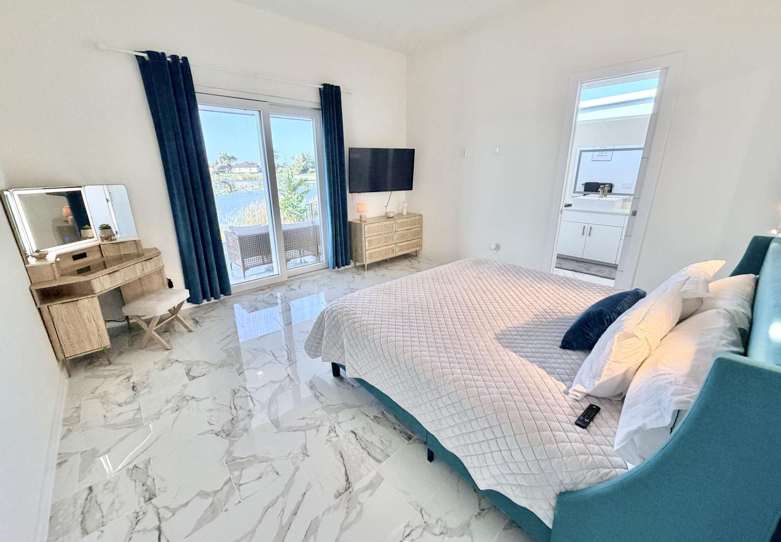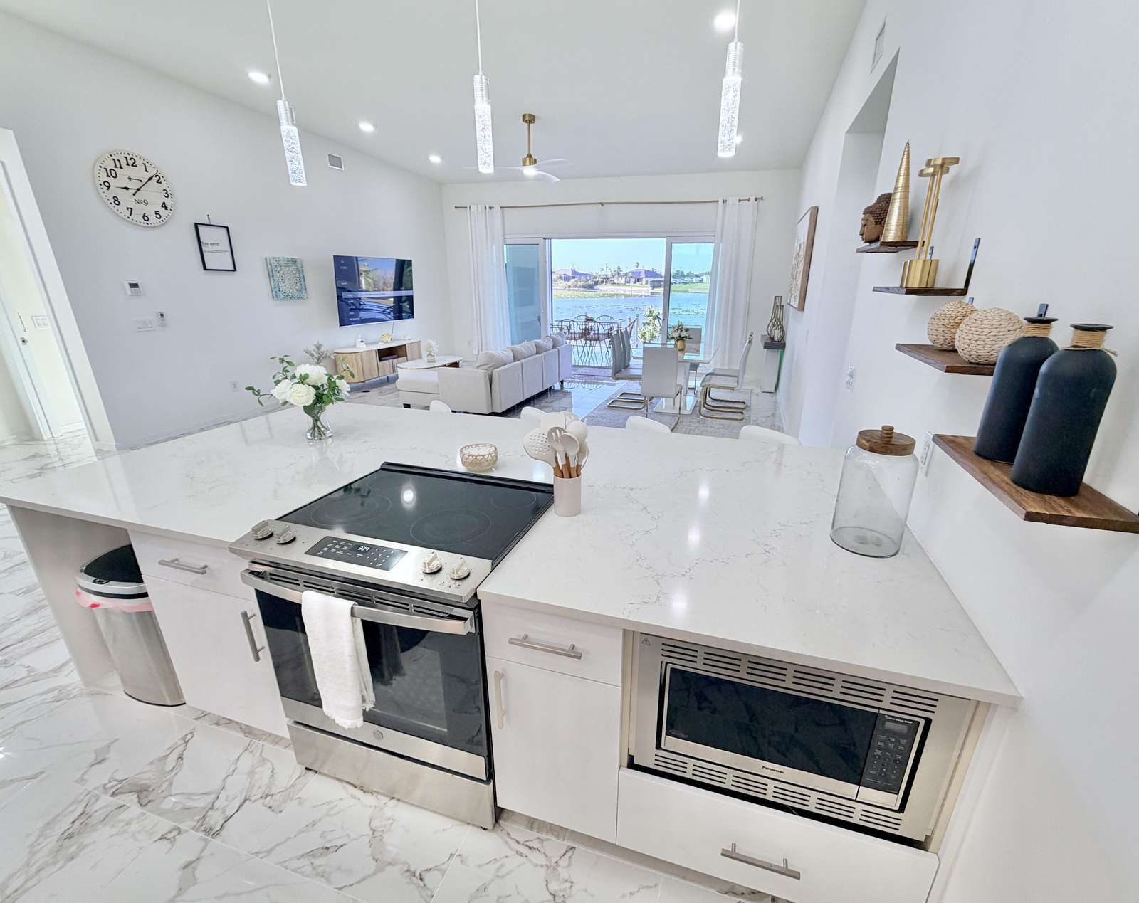 Bright and airy waterfront home with lush tropical landscaping