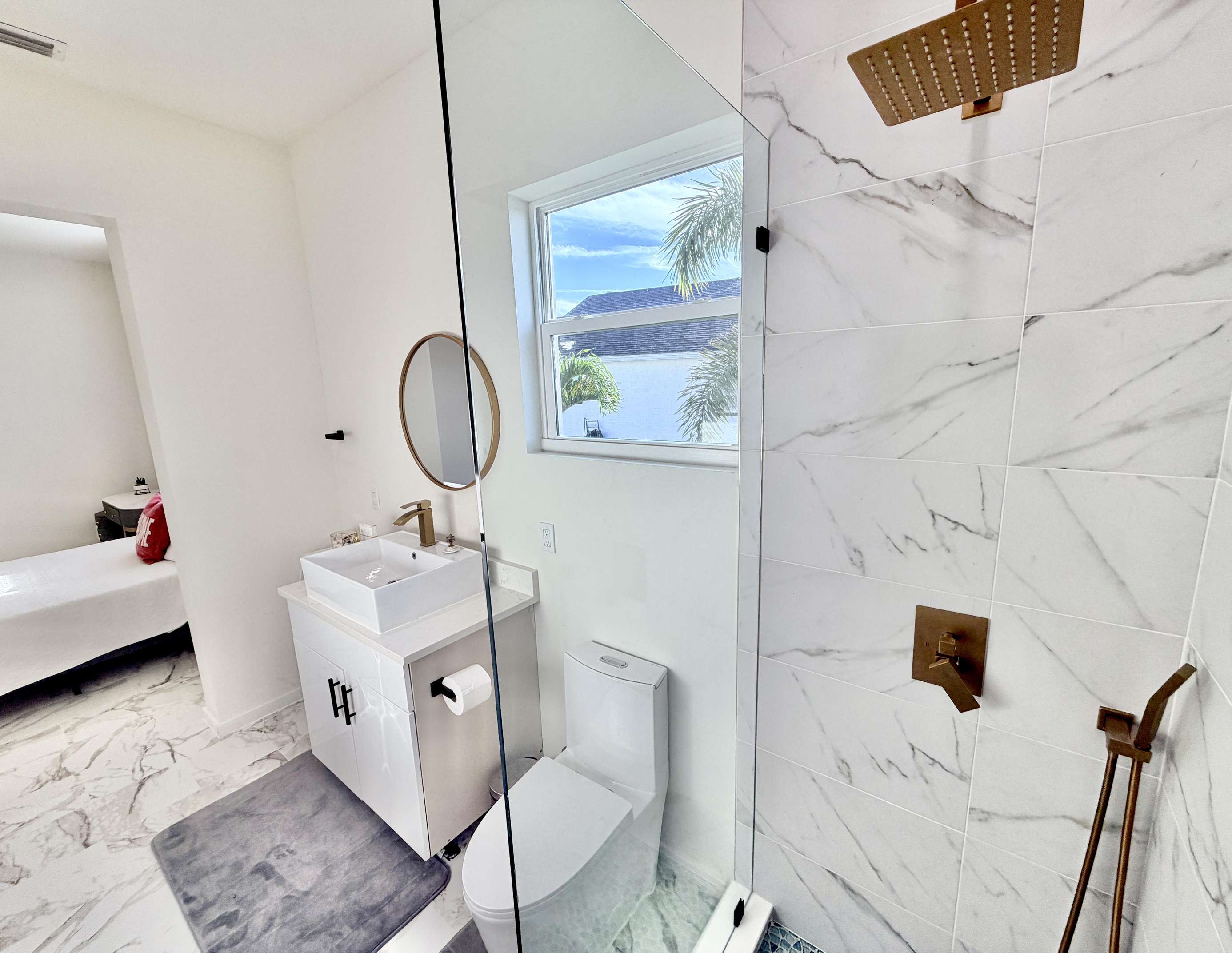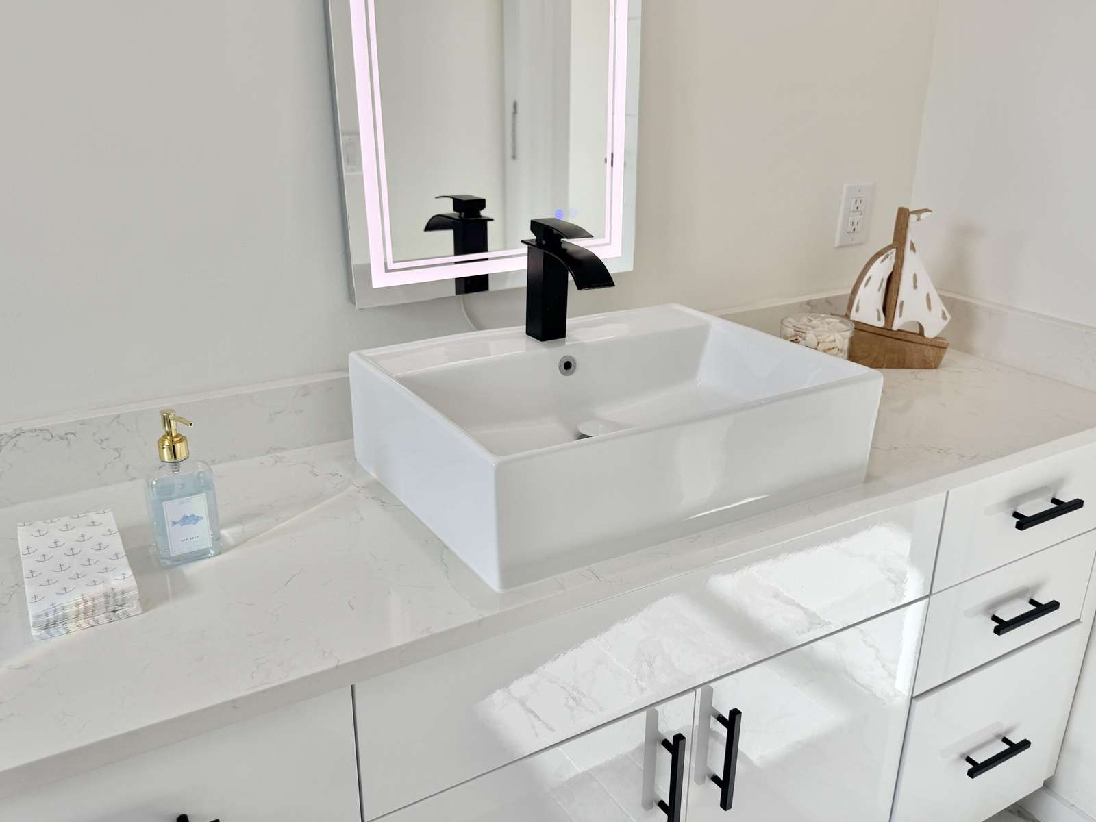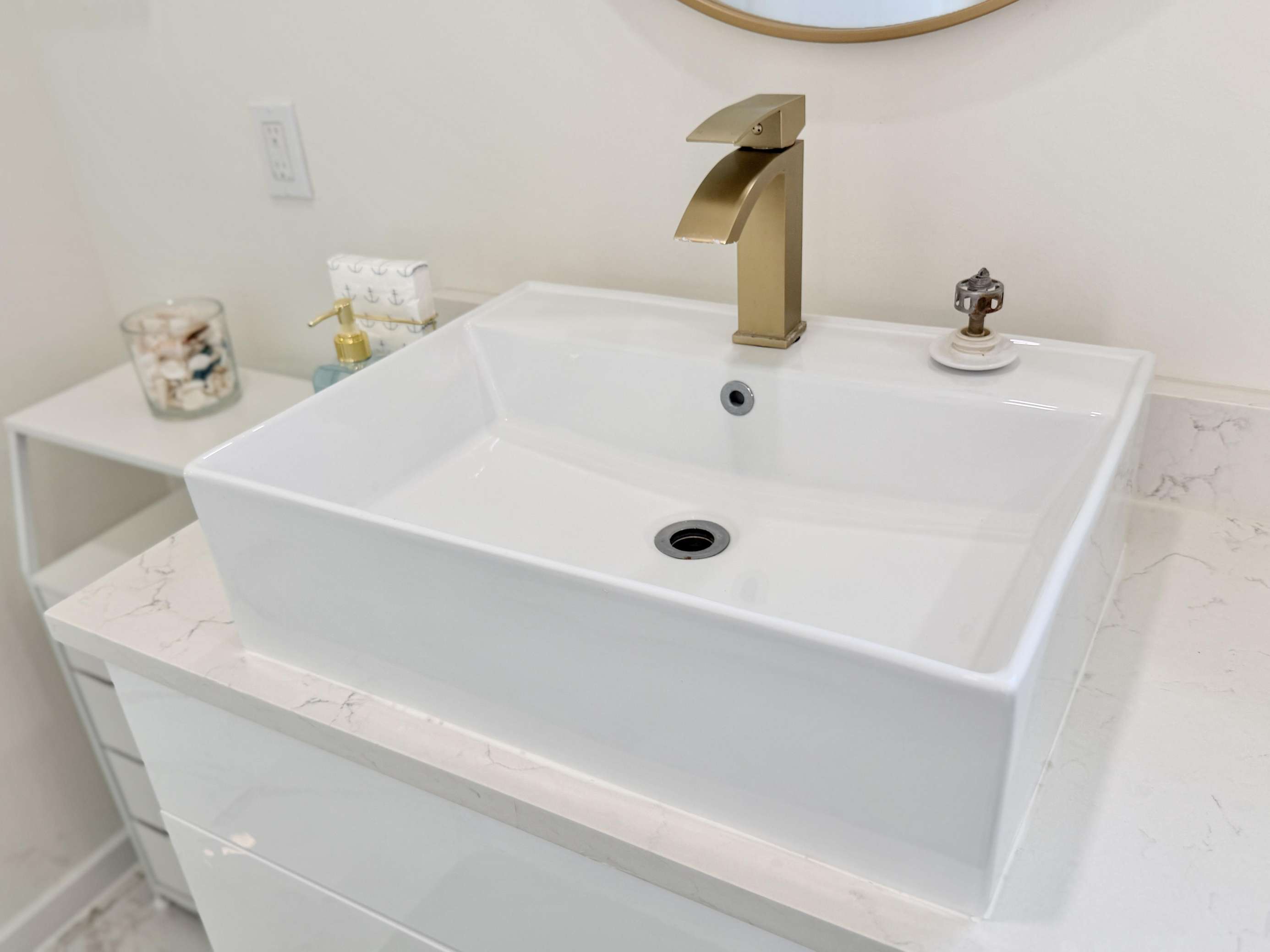 • High-touch surfaces cleaned with disinfectant (like countertops, light switches, handles, and faucets)